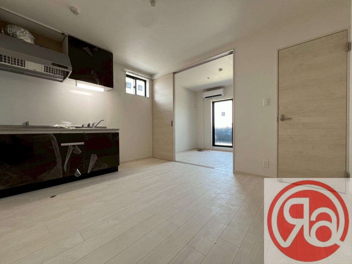 7.5畳のダイニングキッチンは、家具のレイアウトもしやすく、ダイニングセットやワークスペースを無理なく配置できるのも魅力。新築ならではの清潔感と機能性を備えた空間で、日常を快適にサポートしてくれます。引き戸で仕切られた洋室があり、寝室や趣味の部屋として使いやすい設計。コンパクトながらもしっかり独立性があり、生活シーンを自然と分けることができます。