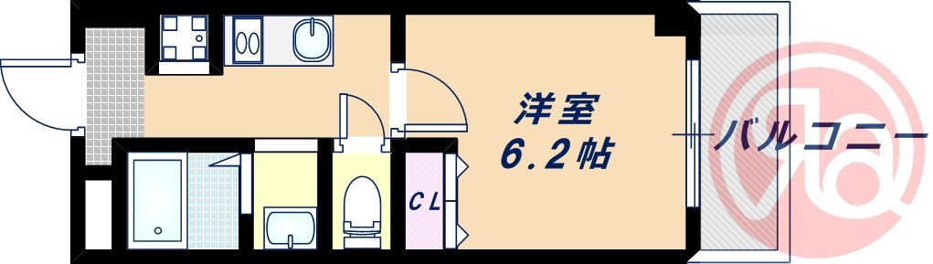 6.2畳の洋室は、一人暮らしにちょうど良い広さで、ベッドやデスク、ソファなどをレイアウトしてもゆとりを感じられる空間です。西向きのお部屋なので、午後から夕方にかけて自然光が入り、明るく温かみのある雰囲気が広がります。落ち着いた内装は、シンプルにまとめても好みのインテリアを取り入れても映えるため、自分らしい暮らしを演出できます。