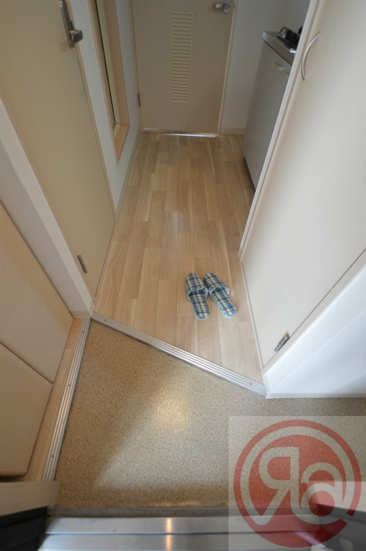脱衣室はありませんが、その代わりにキッチン横に洗濯機置き場が設けられている設計になっています。扉でしっかりと区切られているため、生活感を隠せるだけでなく、調理スペースからも視覚的に独立したすっきりとした印象に。来客時にも目につきにくく、プライベートを保ちやすい工夫が施されています。キッチンと隣接していることで、家事の動線がコンパクトにまとまり、調理や片付けの合間に洗濯機を回すといった効率的な暮らしも可能。単身者にとって使いやすく、スペースを無駄にしないスマートな設計が魅力です。