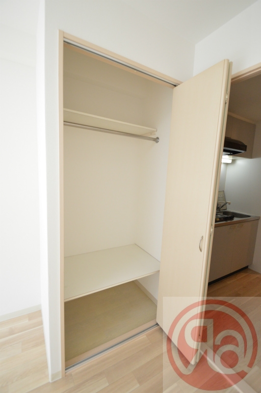 クローゼットはコンパクトですが、ハンガーラッグ付きで、シャツ類はしわなくかけることができます。