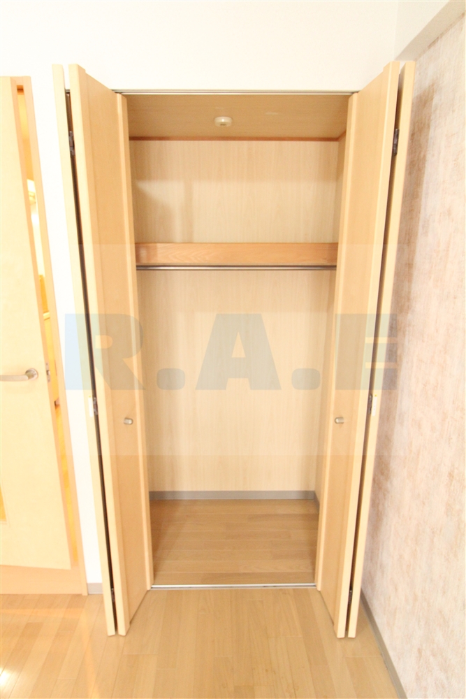 クローゼットはコンパクトですが、ハンガーラッグ付きで、シャツ類はしわなくかけることができます。