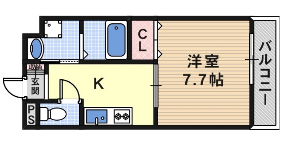 洋室にはクローゼットが設置されており、衣類や小物を整理整頓しやすく、生活空間を広く使える設計です。ひとり暮らしに必要な荷物を十分に収納できるサイズ感で、季節ごとの衣替えや趣味のアイテムもスッキリ片付けられます。限られたスペースでも収納力を確保しているため、快適で整った暮らしをサポートします。