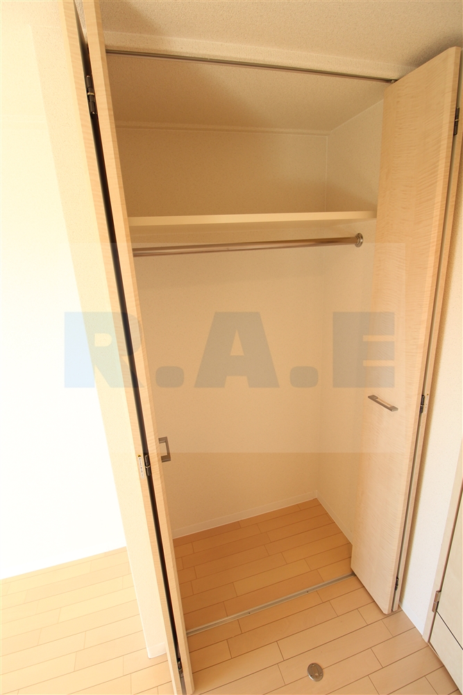 クローゼットはコンパクトですが、ハンガーラッグ付きで、シャツ類はしわなくかけることができます。入りきらないオフシーズンの衣類はボックス収納やベッド下収納などで補うのがおすすめ。限られたスペースを有効活用することで、スッキリとした暮らしが実現します。