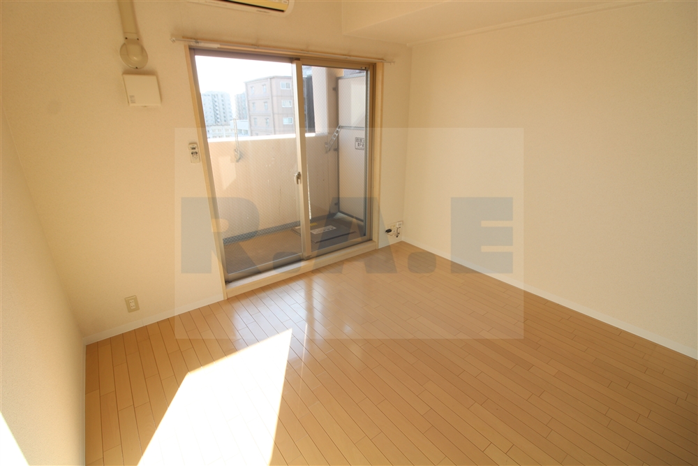 8畳の広々としたワンルームは、南向きの窓からやわらかな光が差し込む心地よい空間で、高層階(12階)ということもあり、外からの視線も気にならず、開放感のある暮らしが叶います。ナチュラルカラーのフローリングでシンプルながら上品な印象です。家具の配置がしやすいスクエア型の間取りで、一人暮らしでもゆとりを感じられます。