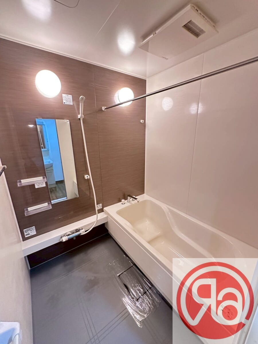リノベーション済みのバスルームは、足をゆったり伸ばして入れる広さが確保されており、日々の疲れをしっかり癒せる設計です。さらに浴室乾燥機能も搭載されているため、雨の日や花粉の季節でも安心して洗濯物を乾かせます。清潔感のある壁や床材が使われ、掃除もしやすく、快適なバスタイムを実現。単身暮らしでもゆとりを感じられる、機能性と居心地の両立した空間です。
