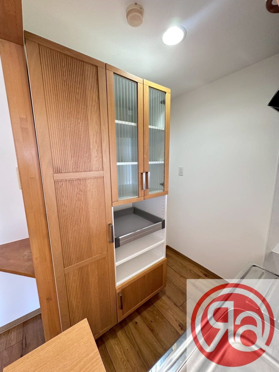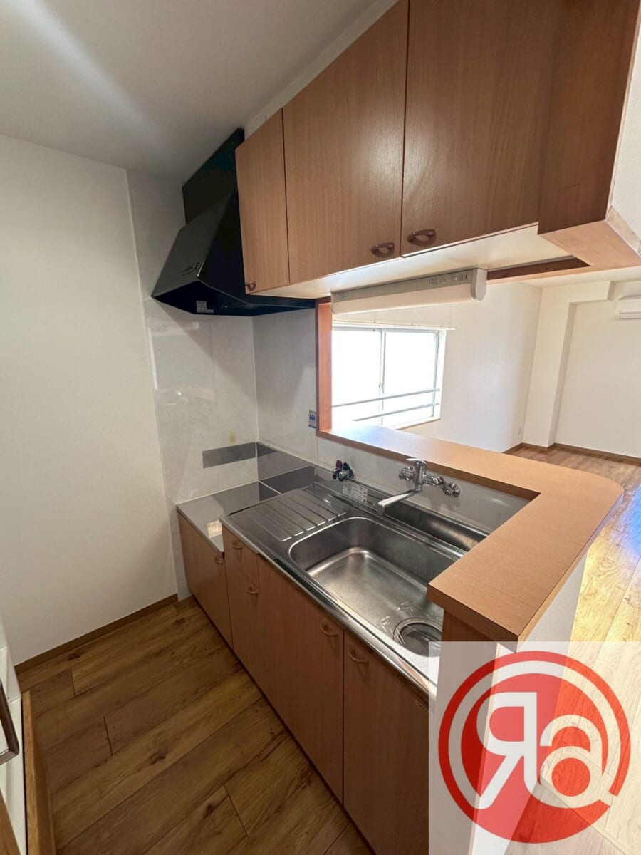コンパクトながら使い勝手の良い3畳のキッチンスペースは、効率的な調理動線を確保。シンクと作業スペースが分かれており、料理がしやすい設計です。リノベーションにより清潔感あるシンクと大容量の収納棚も整備済みで、生活用品や調理器具を整理しやすくなっています。カウンターキッチンなので、換気や採光もばっちりです。