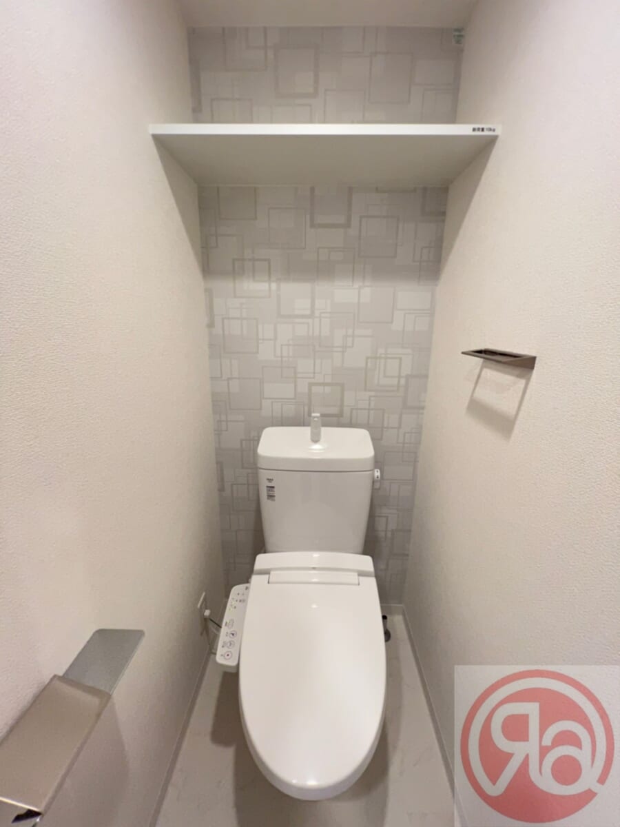 トイレは、温水洗浄便座付きで機能性も高く、清潔感のある快適な空間に仕上がっています。シンプルでありながらも生活に欠かせない設備がしっかり整っており、来客時にも安心です。トイレットペーパーホルダーの横にはちょっとした小物が置ける棚板付きなので、芳香剤やスマホ、ポーチなどをサッと置けて、見た目にもすっきり整います。生活の中の“ちょっと便利”が、しっかり考えられたポイントです。