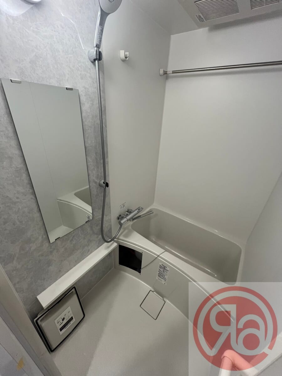 バスルームは浴室乾燥機能つきなので、天気に左右されずに洗濯物が乾かすことができ、