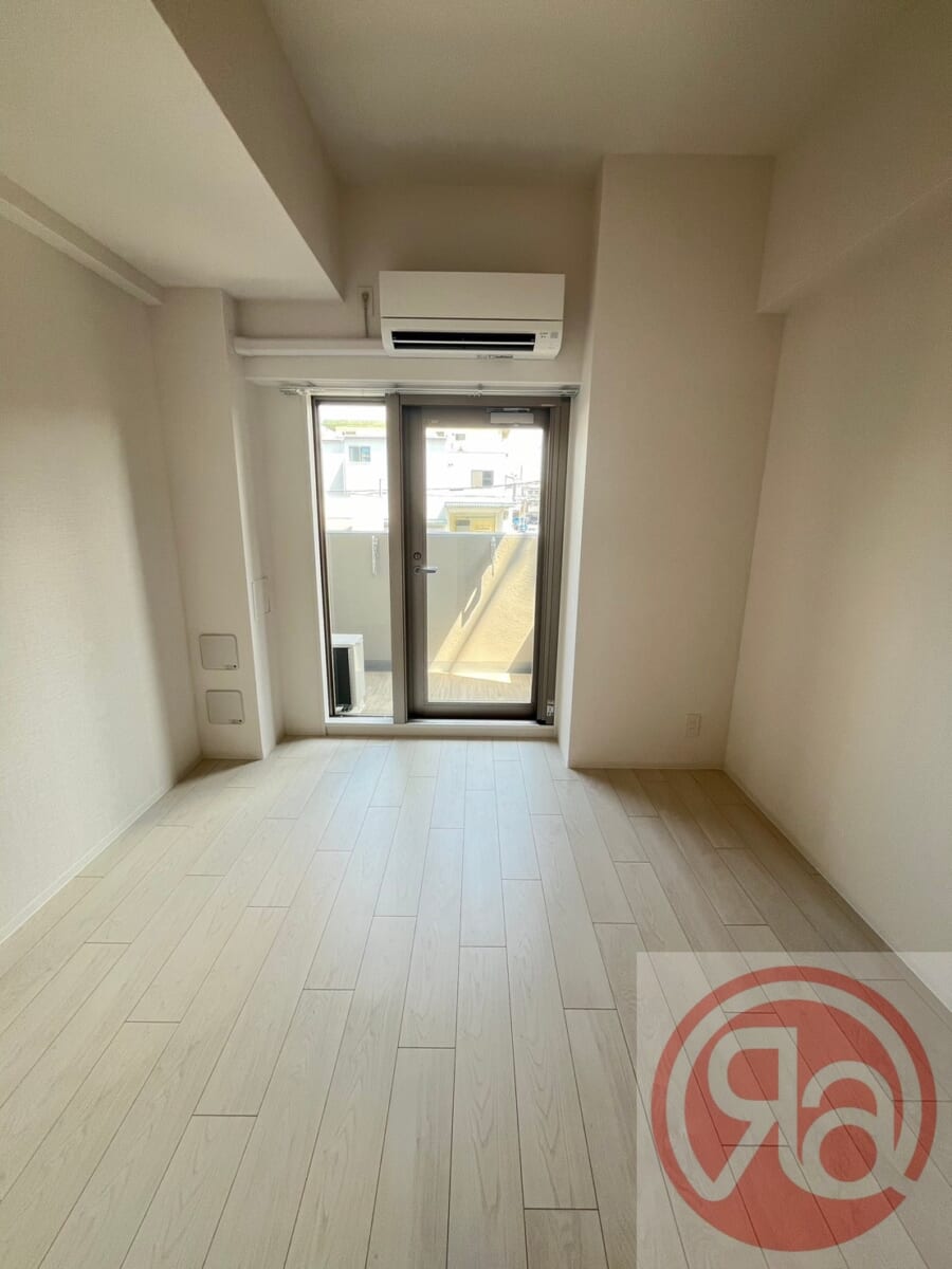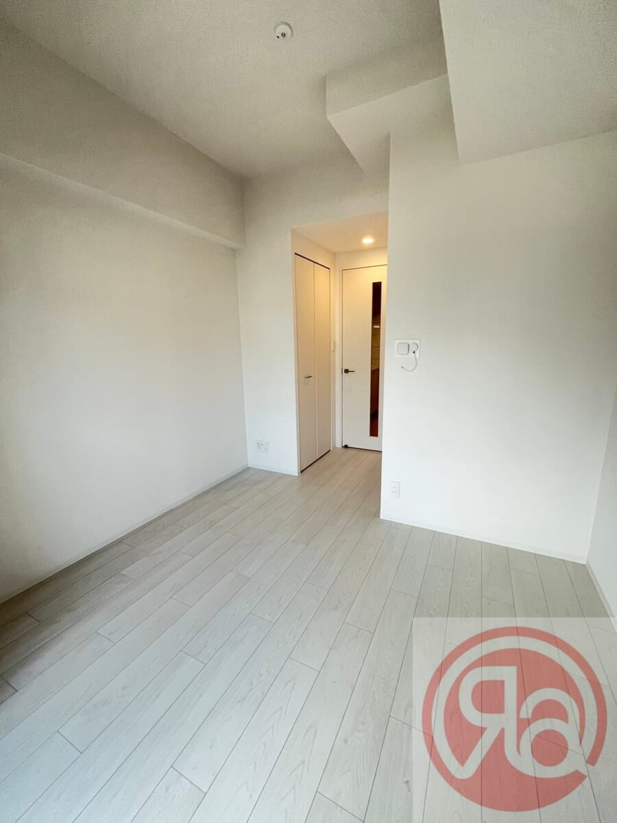 6.2畳の洋室は無駄のない設計で居住スペースがしっかり確保されています。家具配置のしやすい間取りで、ベッド・デスク・収納家具を置いても圧迫感がありません。白基調のシンプルな内装なので、ナチュラルインテリアからモノトーンコーデまで幅広く楽しめます。窓の外は道路に面しているため視界が抜け、自然光も入りやすい明るいお部屋です。