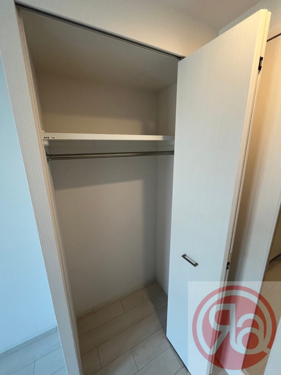 クローゼットはコンパクトですが、ハンガーラッグ付きで、シャツ類はしわなくかけることができます。入りきらないオフシーズンの衣類はボックス収納やベッド下収納などで補うのがおすすめ。限られたスペースを有効活用することで、スッキリとした暮らしが実現します。