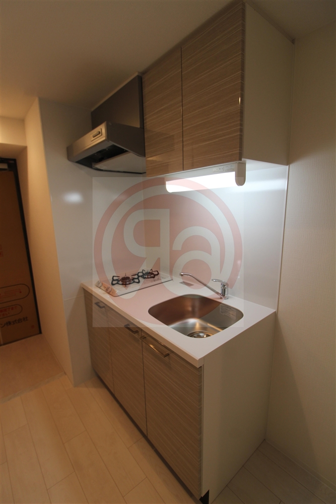 キッチンはコンパクトながら使い勝手を重視した設計で、縦型2口ガスコンロを完備。調理スペースも確保されており、自炊派の方にも嬉しい環境です。上下に収納スペースがあり、食器や調理器具を整理しやすく、作業効率が上がります。キッチン周りはお掃除も簡単で、常に清潔な状態を保てます。