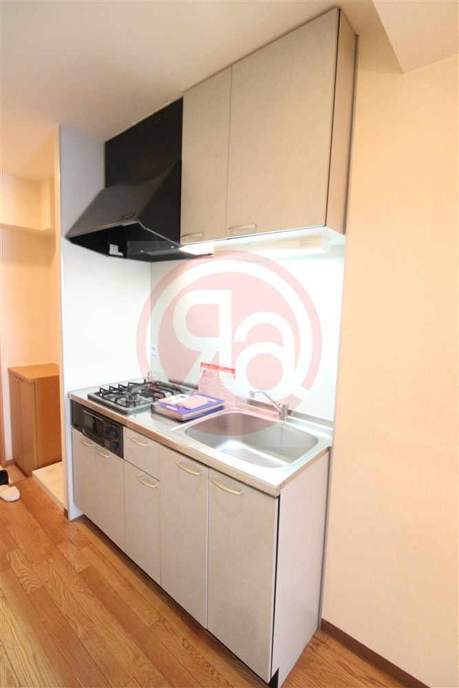 キッチンはコンパクトながら使い勝手を重視した設計で、縦型2口ガスコンロを完備。調理スペースも確保されており、自炊派の方にも嬉しい環境です。上下に収納スペースがあり、食器や調理器具を整理しやすく、作業効率が上がります。キッチン周りはお掃除も簡単で、常に清潔な状態を保てます。