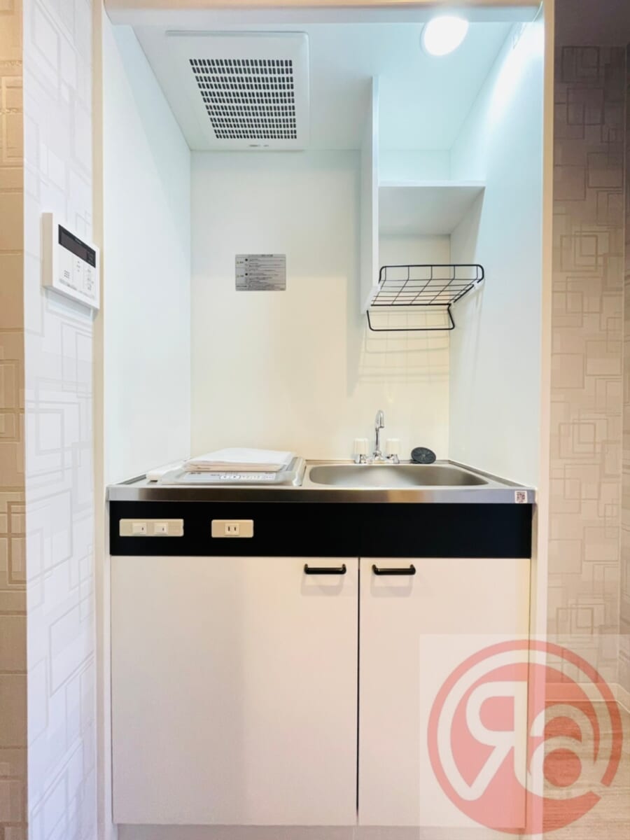キッチンは1口IHコンロで、火を使わない安心設計なので、調理器具の焦げ付きも少なく、掃除も簡単です。省スペースタイプで、調理スペースはありませんが、作業台代わりになるラックやシンク上トレーなどで工夫すれば、簡単な自炊にも対応可能です。出張が多く外食中心の方や、初めての一人暮らしで軽めの自炊しかしない方にはちょうどいい仕様です◎