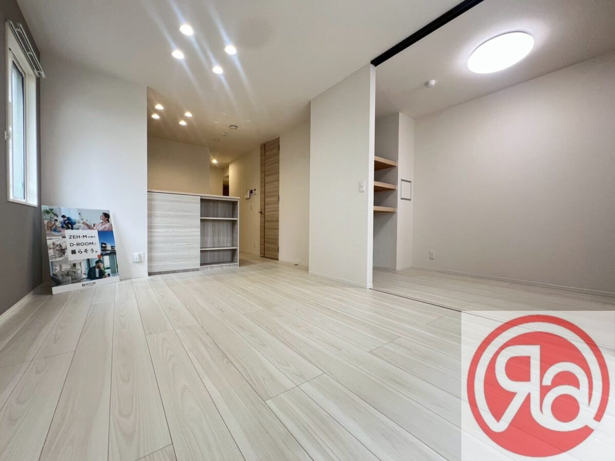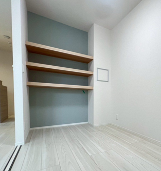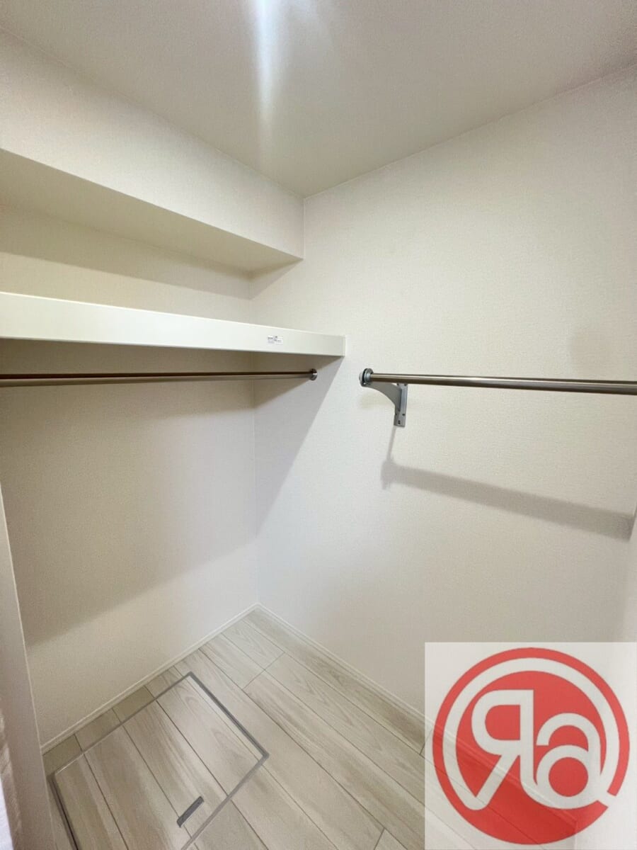 洋室には、衣類をたっぷりしまえるウォークインクローゼットを完備しており、ハンガーパイプと棚の配置がしっかり確保されているため、季節物の衣替えや家族それぞれの持ち物も整理しやすく、“収納力の高さ”が日常の暮らしやすさにつながります。大きめのスーツケースや家電のストックも置けるため、物が多いファミリーでもすっきりした室内をキープできます。それぞれの部屋の用途に合わせて使い分けられる収納設計は、暮らしの動線を整え、毎日が少し軽くなる便利さをもたらしてくれます◎