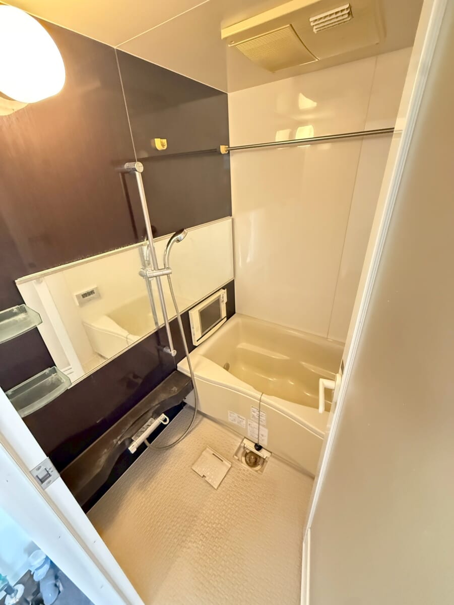 バスルームにはテレビを備えた贅沢仕様で、毎日の入浴時間が“ただ体を洗う場所”から、リラックスを楽しむひとときへと変わります。お気に入りの番組やニュースを眺めながら湯船に浸かれるため、忙しい日でも自然と気持ちを切り替えられる空間です。さらに追い炊き機能付きなので、帰宅時間が不規則な方や、ゆっくり長風呂を楽しみたい方にも安心。時間が経っても温度を気にせず、いつでも快適な状態で入浴できます。機能性と癒しを兼ね備えたバスルームは、1DKのお部屋とは思えない満足感です◎