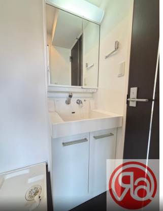 脱衣室には独立洗面台と洗濯機置き場が横並びで配置されており、身支度から洗濯までの動線が非常にスムーズ。朝の忙しい時間帯でも、無駄な動きを減らしながら効率よく準備ができます。独立洗面台は鏡裏収納付きなので、洗面用具やスキンケア用品、整髪料などを生活感なくまとめて収納可能で、カウンター周りをすっきり保てることで、空間全体に清潔感が生まれます。脱衣スペースとしてもゆとりがあり、日常使いのしやすさをしっかり考えた実用的な脱衣室です◎