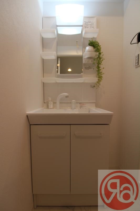 脱衣室には独立洗面台が設けられており、朝の支度や帰宅後の身だしなみを整える時間が快適に。収納がしっかり確保されているため、スキンケア用品やヘアセット道具、日常的に使う小物類をすっきりと隠して置けます。洗面台周りに物が出っぱなしにならないので、毎日使う場所なのに自然と清潔感がキープできる点が魅力です。生活感を抑えつつ“自分のための身支度スペース”をつくりたい方にぴったりの仕様です◎