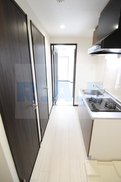 コンパクトながらも機能的なキッチンスペースは、2口ガスコンロ完備しているので自炊派にも満足いただける設備です。一人暮らしに必要な調理設備がしっかり整っており、簡単な自炊から日常使いまで対応できます。居室と程よく距離があるため、生活感が出にくい間取りなのも嬉しいポイント。初めての一人暮らしでも、無理なく料理を楽しめる設計です。