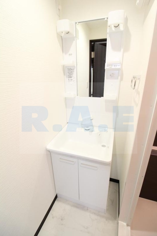 脱衣室には独立洗面台が設けられており、朝の支度や帰宅後の身だしなみを整える時間が快適に。収納がしっかり確保されているため、スキンケア用品やヘアセット道具、日常的に使う小物類をすっきりと隠して置けます。洗面台周りに物が出っぱなしにならないので、毎日使う場所なのに自然と清潔感がキープできる点が魅力です。生活感を抑えつつ“自分のための身支度スペース”をつくりたい方にぴったりの仕様です◎