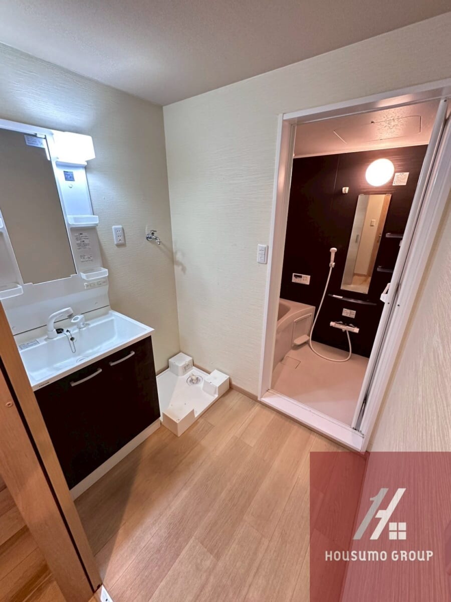 脱衣室には、独立洗面台と洗濯機置き場が横並びで配置されており、朝の支度も洗濯も“その場で完結”できる使い勝手の良い空間です。動線が短く、洗濯物の予洗いから洗濯機へ移す流れが非常にスムーズ。忙しい日でもムダな動きがなく、家事効率をしっかり支えてくれます。独立洗面台は、身支度に必要なアイテムをまとめて置けるため、生活リズムを整えたい方にもおすすめです。シンプルながらも必要な機能が揃った脱衣室は、一人暮らしはもちろん、同棲生活でも“自然と暮らしやすい”と感じられる実用的なスペースです◎