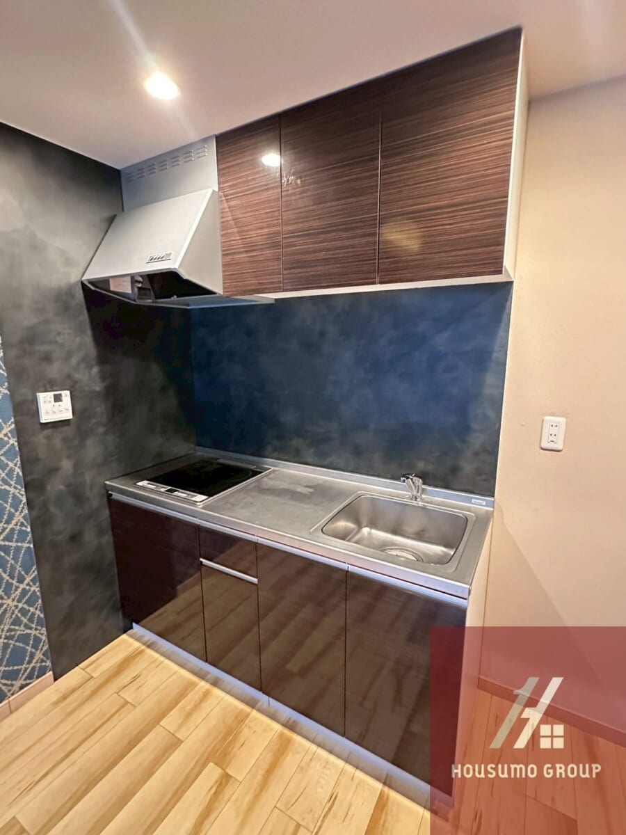 LDK内に配置されたキッチンは、生活動線を意識した使いやすいレイアウトで、カウンターキッチンではありませんが、調理中でもリビング全体を見渡せるため、テレビを見ながらの調理や、会話を楽しみながらの食事準備が可能です。一人暮らしはもちろん、二人暮らしでも無理なく使える設計で、「料理をする時間」も暮らしの一部として楽しめるキッチンです◎