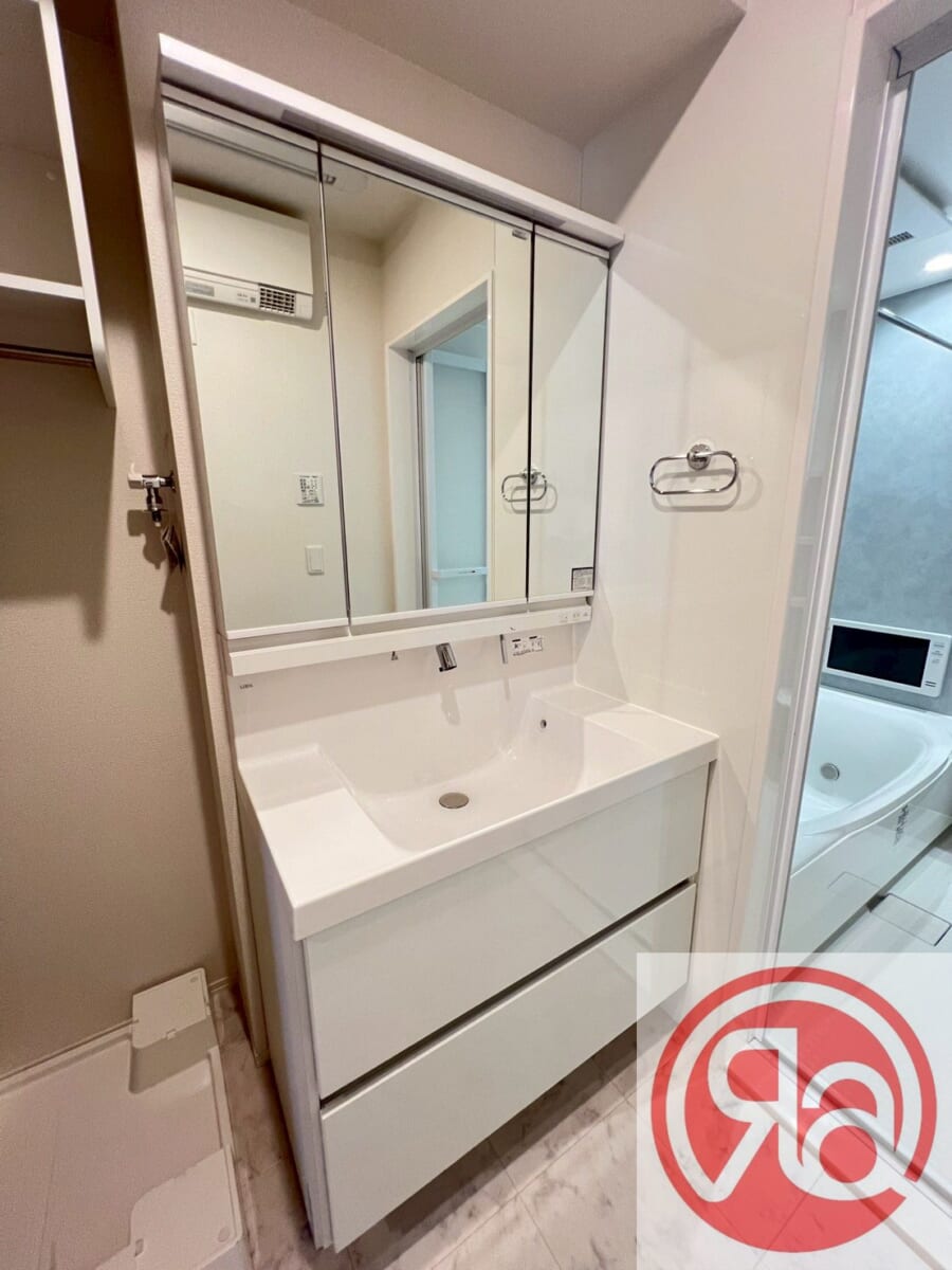 毎日の疲れを癒すバスルームは、ゆったりとしたサイズ感が魅力で、足を伸ばして入浴できるため、慌ただしい日常の中でもリラックスした時間を過ごせます。さらに、小型テレビを備えた珍しい仕様で、バスタイムを“ただの入浴”で終わらせません。ニュースやドラマを楽しみながら過ごす時間は、自宅にいながらホテルライクな感覚を演出。築浅物件ならではの清潔感もあり、水回りを重視したい方にも満足度の高いバスルームです。