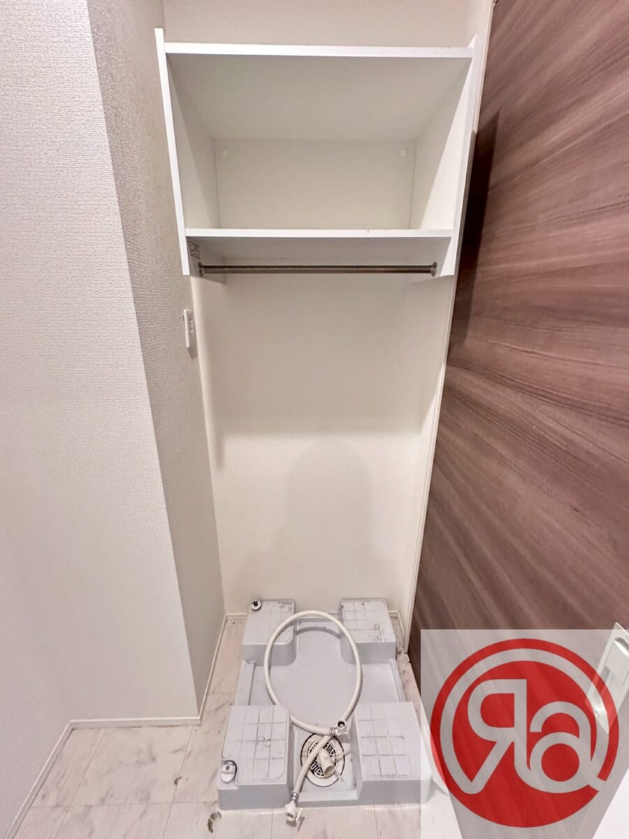 脱衣所は独立洗面台を備えた、使い勝手の良い空間です。洗髪洗面化粧台付きで、朝の身支度や帰宅後の手洗いもスムーズに行えます。室内洗濯機置き場があり、洗濯から物干しまでの動線も良好です。収納スペースも確保されており、タオルや洗剤類をすっきり整理できます。ゆとりのある広さで、家族が同時に使用しても窮屈さを感じにくい設計です。清潔感のある内装で、毎日快適に使える脱衣所です。水回りがまとまっており、生活動線に配慮された間取りとなっています。