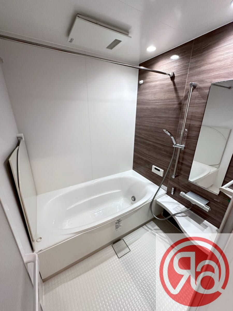 バスルームは1.6×2.0m以上の広さを確保した、ゆとりある空間です。追い焚き機能付きのため、家族それぞれの入浴時間が異なっても快適に利用できます。浴室乾燥機を備えており、雨の日や花粉の季節の洗濯にも便利です。バス・トイレ別設計で、日々の生活動線もスムーズです。清潔感のある内装で、毎日のバスタイムを心地よく演出します。ゆったりと足を伸ばしてくつろげる浴槽で、1日の疲れをしっかり癒せます。機能性と快適性を兼ね備えた、家族で使いやすいバスルームです。