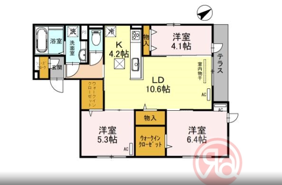 各居室には収納スペースが確保されており、生活用品をすっきり整理できます。寝室にはウォークインクローゼットを備え、衣類や季節物もまとめて収納可能です。大容量のため、タンスを置かずにお部屋を広く使えます。玄関にはシューズボックスがあり、靴類もきれいに収納できます。用途別に収納を使い分けでき、住空間を効率よく活用できます。収納が充実しているため、室内を常に整った状態に保ちやすいです。ファミリーにも嬉しい、収納力の高い間取りとなっています。