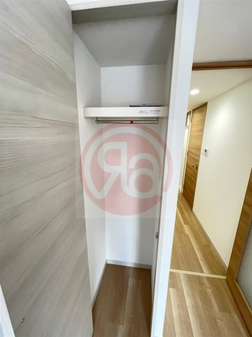 クローゼット付きで衣類や荷物をすっきり収納できる便利なスペースです。ハンガーパイプが設置されており、コートやシャツもシワになりにくく保管できます。収納力が高く、季節物やスーツケースなどもまとめて収められます。室内を広く使えるため、居住空間をすっきりと保てます。整理整頓しやすく、快適な一人暮らしをサポートする実用的な収納です。
