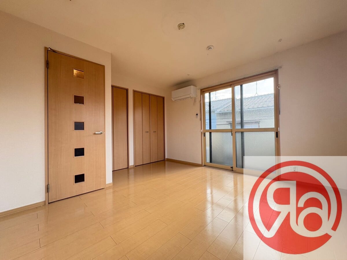 洋室はゆとりのある広さが確保されており、家具配置の自由度が高い使いやすい空間です。フローリング仕様で掃除がしやすく、清潔感のある室内を保ちやすくなっています。クローゼット付きのため、衣類や生活用品をすっきり収納でき、居住スペースを広く使えます。バルコニーに面しており、自然光が入りやすく明るい印象の室内です。単身生活に適した、快適性と実用性を兼ね備えた洋室となっています。