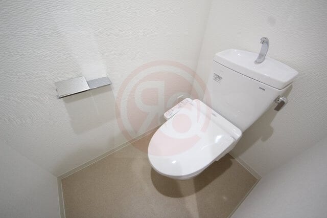 清潔感のある白い壁紙と、落ち着いたトーンの床材が調和した、心地よいプライベート空間です。温水洗浄便座が完備されているのはもちろん、手洗い付きのタンクが採用されており、限られたスペースを効率よく使える実用的な設計が魅力です。壁面には、スタイリッシュなシルバーのペーパーホルダーが使いやすい位置に配置され、シンプルながらも洗練されたアクセントを添えています。床面は凹凸が少なくお掃除がしやすい素材で仕上げられているため、日々のメンテナンスも手軽に行え、常に清潔な状態を保つことができます。明るく開放的な色彩でまとめられたこの場所は、毎日の生活の中でホッと一息つけるような、安らぎを感じさせる空間となっています。
