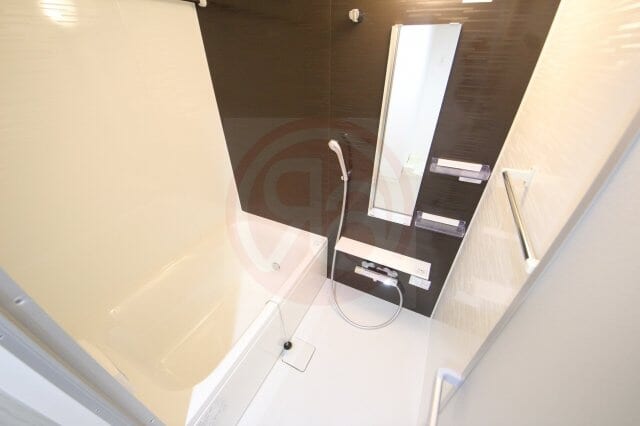 清潔感あふれるホワイトを基調とした、一日の疲れを穏やかに癒してくれるリラックス空間です。このお部屋には追い焚き機能が完備されているため、いつでもお好みの温度で温かい湯船に浸かることができ、寒い季節や帰宅時間が異なる二人入居の場合でも快適なバスタイムを楽しめます。浴室乾燥機も備わっており、雨の日の洗濯物干し場として重宝するだけでなく、使用後の湿気を素早く除去してカビの発生を抑え、お掃除の手間を軽減できるのも大きなメリットです。洗い場には機能的なシャワーや大型の鏡、小物を整理できる棚が使いやすく配置されており、細部まで住まう人の心地よさが追求されています。洗練された設備とゆとりある設計が調和したこの場所は、毎日の入浴時間を、心身ともにリフレッシュできる特別なひとときへと変えてくれます。