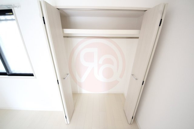 洋室には、壁一面を有効に活用した大容量のクローゼットが設置されており、お部屋を常にすっきりと広く保つことができます。内部には機能的なハンガーパイプと枕棚が備わっているため、丈の長い衣類から季節物の寝具、小物類までデッドスペースを作らず効率的に整理することが可能です。また、廊下部分にも扉付きの物入が確保されており、生活感の出やすい掃除用具や日用品のストックを居室から切り離してスマートに収められるのが嬉しいポイントです。お部屋全体のデザインと調和した明るい色調の建具が、扉を閉めた際にも圧迫感を与えず、ゆとりある快適な暮らしを支えてくれます。