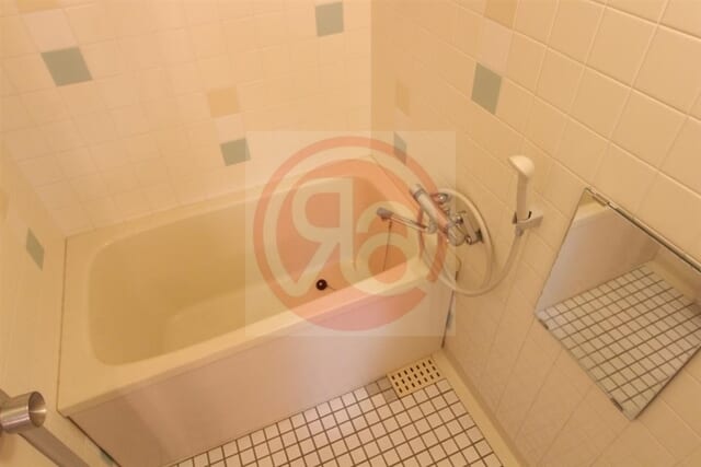 バスルームは淡いイエローを基調としたタイル貼りの壁面が印象的で、どこか懐かしさを感じさせる温かみのある空間となっています。浴槽はゆったりと浸かれる広さが確保されており、毎日のバスタイムで一日の疲れを心地よく癒やすことが可能です。洗い場は白のスクエアタイルで清潔感があり、手元を照らす鏡やシャワーホルダーなど、日々の使い勝手を考慮した設備がシンプルに整えられています。お風呂とトイレが完全に分かれたセパレートタイプであるため、湿気の影響を気にせず常に衛生的でリラックスできるプライベートな時間を過ごせるのが魅力です。